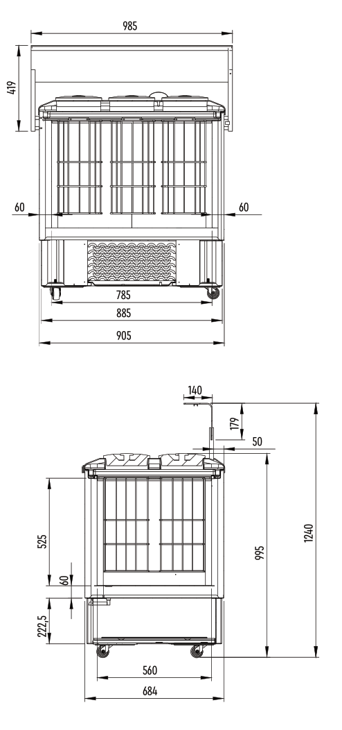 Coperchi carapine, lavaporzionatore, 4 ruote pivottanti 2 con freno