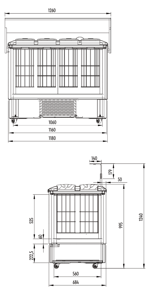 Piano di servizio in plexiglass, coperchi carapine, lavaporzionatore, 4 ruote pivottanti 2 con freno